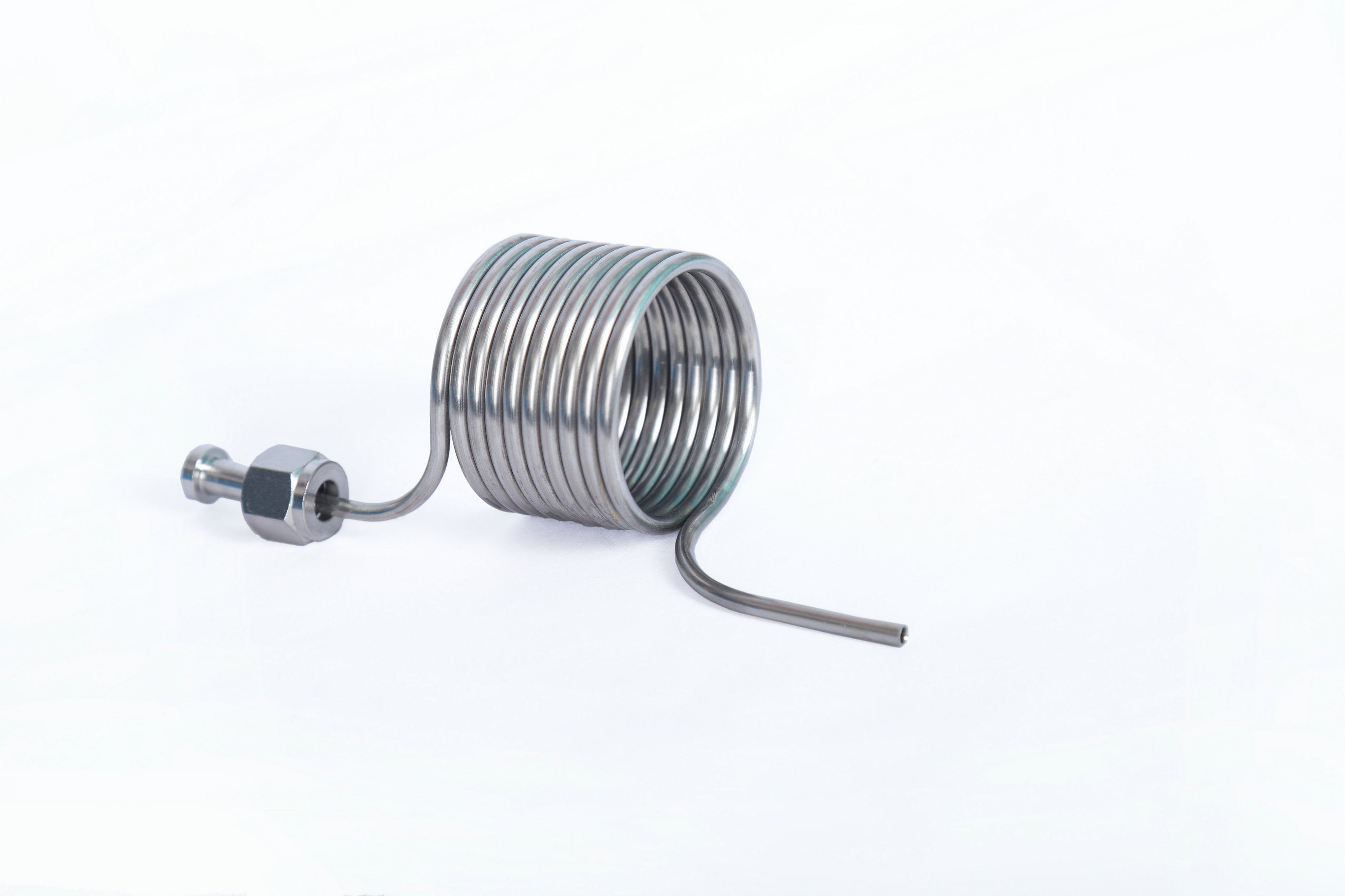消沫器具備有特種功能,鏈接口掛在無菌取樣閥螺紋絲出口上,(設計為螺旋式)。管內(nèi)徑光潔度光滑,取樣閥打開流向到消沫器盤管上,經(jīng)過盤管螺旋走向,減少啤酒氣體壓力,出酒很少有沫,保證取樣時的酒液口感度 同時也可以滿足于各種生產(chǎn)工藝需求,也可以用來打酒設備。該啤酒消沫器不銹鋼SUS304材質(zhì),衛(wèi)生設計,滿足于啤酒業(yè)等各種工藝領域。